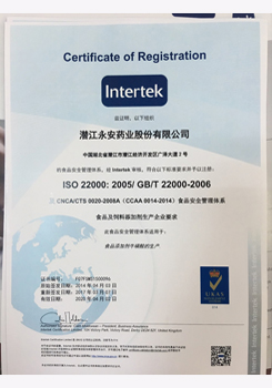 潛江永安藥業股份有限公司成立于2001年,坐落于江漢平原腹地潛江市國家高新技術產業開發區,占地500余畝,注冊資金貳億玖仟肆佰陸拾捌萬貳仟伍佰元整,是一家擁有自主知識產權的國家高新技術企業。公司股票于2010年3 月5日在深圳證券交易所掛牌上市(股票代碼為002365)。公司具有雄厚的技術開發能力,是湖北省創新型企業和湖北省知識產權建設示范企業。公司研發平臺分別被認定為省級企業技術中心和湖北省功能性食品添加劑工程技術研究中心。 經過多年的發展,公司形成了以食品及藥品添加劑牛磺